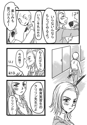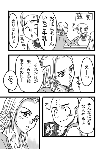 ←1枚目 ↓2枚目 特にオチとか続きとか無いんですけど…!すみません;;ホント漫画を描く才能なんてこれっぽっちも持ち合わせておりません! 18号はいちご牛乳以外の楽しみを見つけましたということで。ヨカッタネ☆(笑)