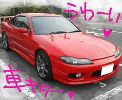 夏もこれくらいだったら乗り切れるのになぁ。 さってー昨日車納車してきたよ! わひゃvせいすけのシルビアでっす!うふふ~嬉しいなぁー 乗った感じ。小さい!私バックする時たまにドア開けてやるんですけど、シルビアでこれやってみたらリアのタイヤがすぐ近くにあってびっくりした。 2ドアなんだからあたりまえなんだけど; アテンザと比べると加速が悪い・ブレーキが悪い・ハンドルが重い・サスが硬いと文句ばっかりでてきてしまいますが、まあうちのアテンザはセダンだからな比べたらイカンかな。 サス・ホイール・タイヤは純正じゃないそうです。 だから尚更仕方ないか。 これを偏平タイヤと呼んでいいものかわからないけど、こういうタイヤはいてるとハンドル重いし取られやすいけどやっぱカッコイイと思うのです(満足v) でも1本にまんえんって…orz 彼に「あんまり減りが早いならノーマルに変えてやる」と言われました。うん…高いもんね… 一応これが我が家の主婦のお買い物カーとなるわけですが、その割に燃費悪いし保険高いし卵買ってトランクに入れようものなら振動で割れそうという…どこが『主婦のお買い物カー』かという感じ。 いいんだ!あたしメロメロだから!vあーかわいいかわいいv(笑) さあ私はいつまでゴールド免許でいられるだろうか。