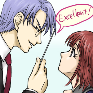 やらかした…とうとう描きやがった。GS… や、ここのところ描いてなかったリハビリっちゅーことで(笑) 氷室せんせぇとヒロインちゃん。 零一さん身長高すぎて女の子と並ぶとどんな塩梅かわからん。これでもかなりかがんでるかな? いやーあのですねーゲームだけにとどまらず小説に手を出しましてねー すんげー良かった!わーすがすがしい気分!青春だった! 切ない恋心と友情と超かわいいヒロインちゃん。あ、二巻の話。 零一さんの俺発言に「ぎやあぁぁ」となりました。←ときめきのおたけび。 GSの話しても誰もワカランと思うので細かくは書きませんが、とにかくすっげー好き。特に二巻。 また零一さん落としたくなったよ。子安さんの「どうでもよろしい」という言い方が聞きたくなったよ。 軽い気持ちで手を出したゲームにまさかここまでハマるとはね…人生何があるかわかりません(大袈裟) 久しぶりにちゃんと描いてみると、前以上になんというか薄っぺらい?絵になりましたね…; 深みの無い塗り方だなあと自分で思いました。 最近sukeさんの生絵をいただきまして、もの凄く感動しました。ありがとうございました!! 前に絵チャで「血の通った絵」とsukeさんがおっしゃっておられて、サイトで見てる分にもそれを感じていたのですが生は本当に体温を感じそうな程に凄くて、もう衝撃でしたね。いい意味での衝撃ね。 それを見て感動してたら彼に「よかったなぁーお前もお礼に描かなきゃ」と言われ「あたしアナログでカラーなんて描けない」と言ったら「いつからそんなぐうたらになった!」と言われました(笑) デジタル=ぐうたらはないでしょうがー;確かに間違えたと思ったらやり直せるし、塗りつぶそうと思ったら一発だし… アナログでカラーって本当に凄いと思います。や、モノクロでもすごいと思います。 せいすけの絵は100パーセントデジタルなので、やり直しのきかないアナログで描かれる方を尊敬します。
